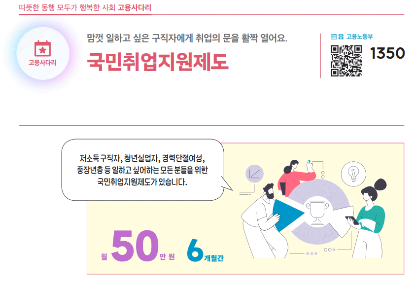 저소득 구직자, 청년실업자, 경력단절여성, 중장년층 등 일하고 싶어하는 모든 분들을 위한 국민취업지원제도가 있습니다.