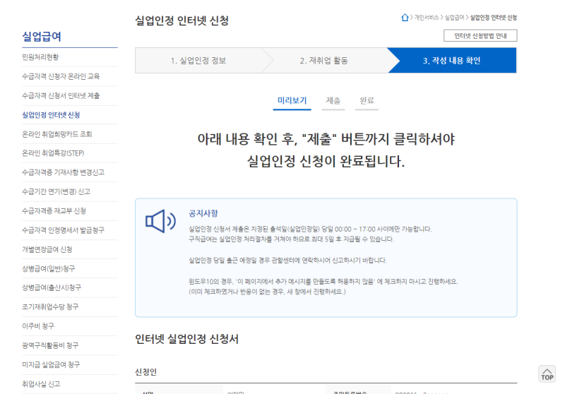 구직활동이나 그 외 활동을 완료하고 나면 실업인정을 받을 수 있는 준비가 되었다.