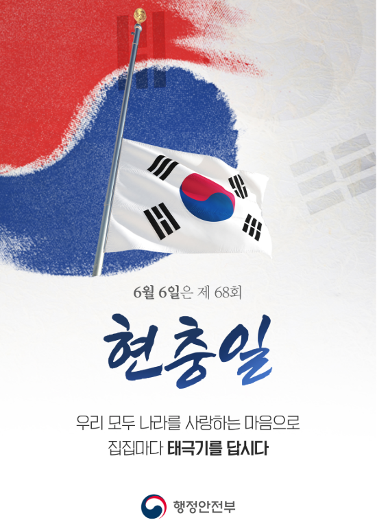 우리 모두 태극기[弔旗]를 게양하여 순국선열과 호국영령의 뜻을 기리고 나라 사랑하는 마음을 되새깁시다
