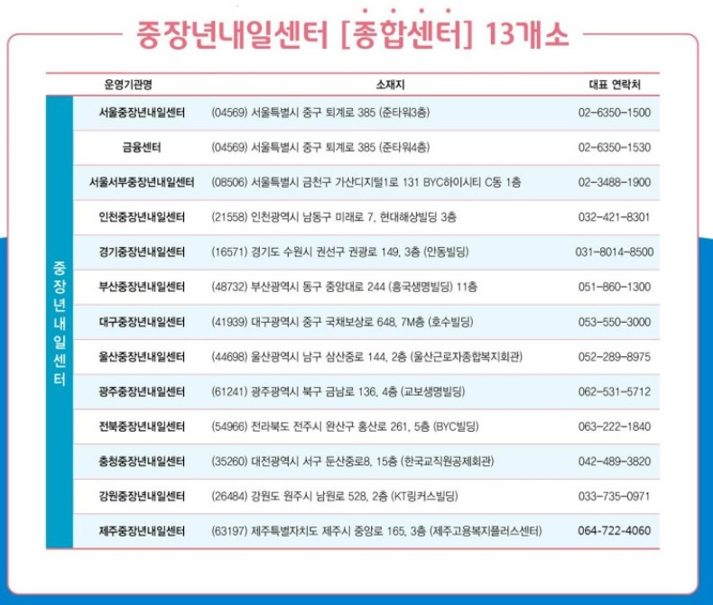 오프라인 신청은 전국 중장년내일센터로 방문해주시면 됩니다.