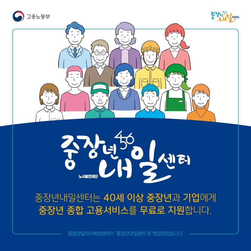 중장년내일센터, 40세 이상 중장년과 기업에게 중장년 종합 고용서비스 지원
