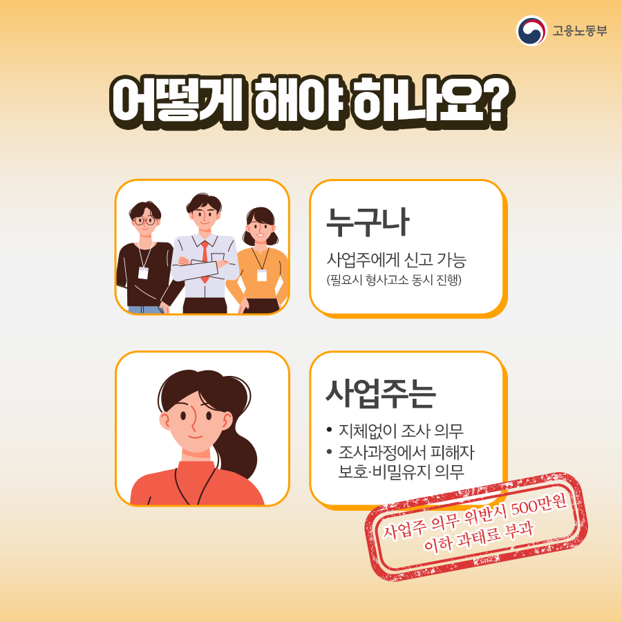 📌고용노동부 노동포털(labor.moel.go.kr)> 민원신청·조회> 신고센터