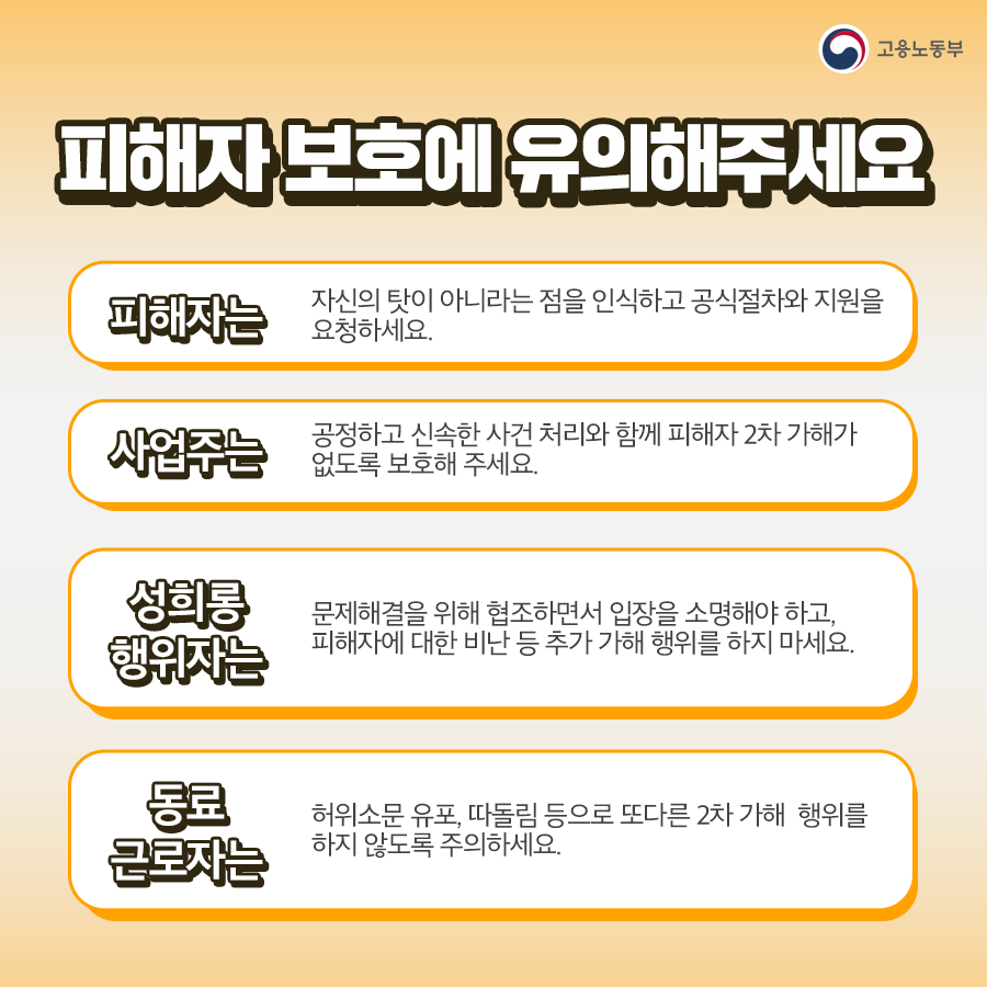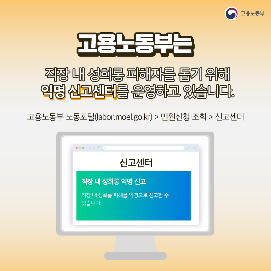 고용노동부는 직장 내 성희롱 피해자를 돕기 위해 익명 신고센터를 운영하고 있습니다.