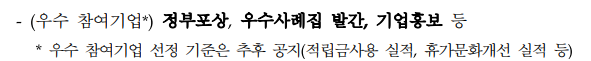 - (참여근로자) 국내여행경비(휴가비) 지원, 상품할인 및 이벤트 제공 등